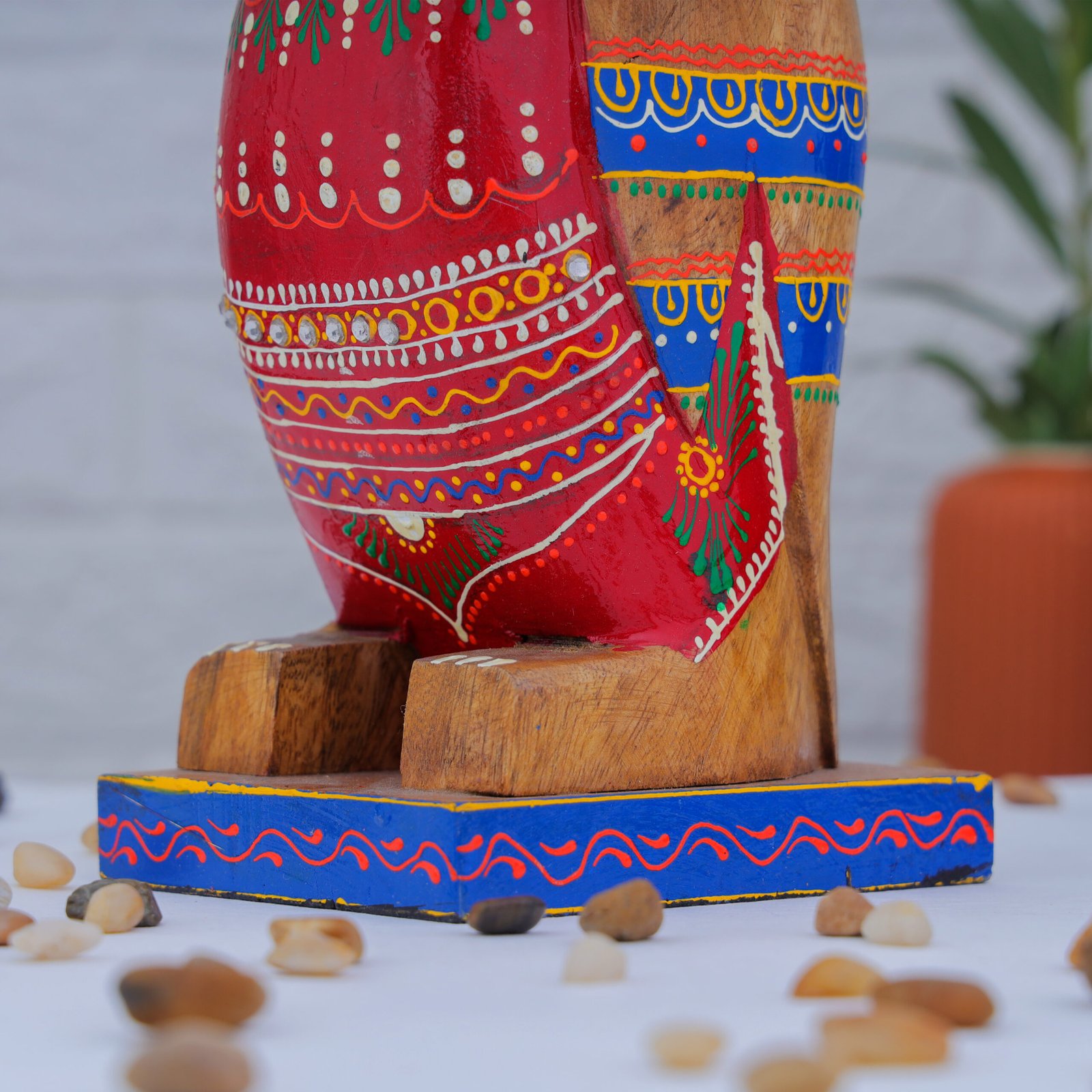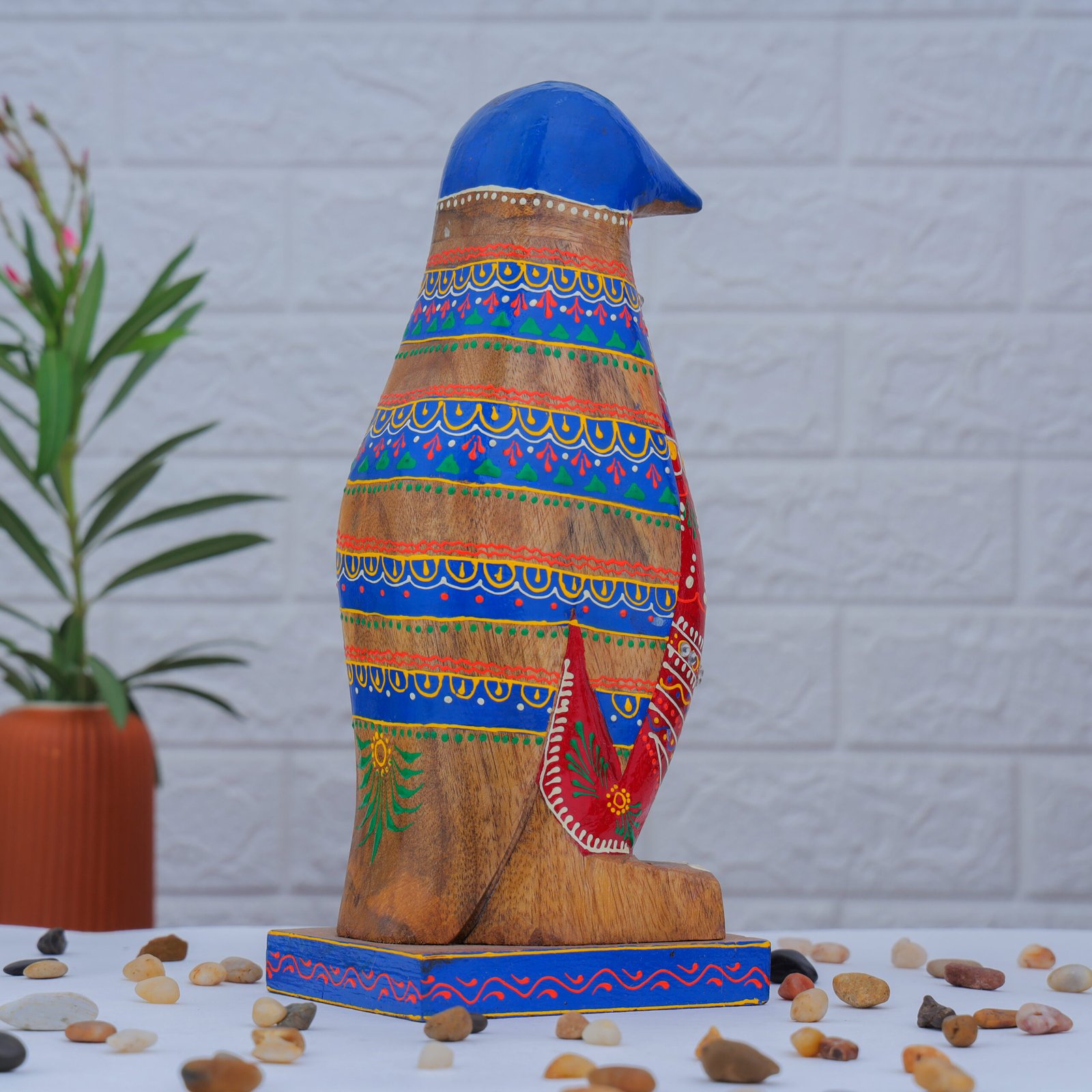 Elevate your décor with this vibrant and artistic wooden bird sculpture, handcrafted in Rajasthan and painted with traditional tribal patterns. A symbol of grace and culture, this piece adds a burst of color and heritage charm to any corner of your home