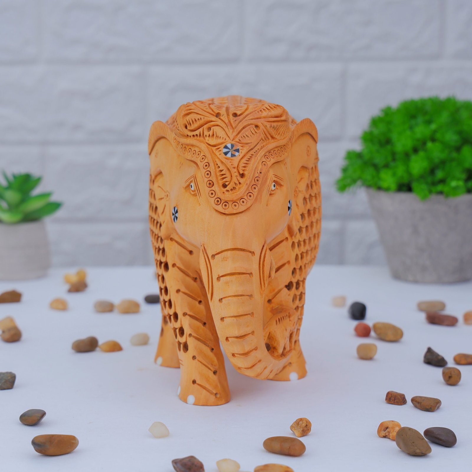 Featuring delicate openwork and beautifully sculpted motifs, this elephant figure reflects the precision and patience of traditional Rajasthani woodcraft. The baby elephant enclosed within the hollow body adds an element of surprise and symbolism.