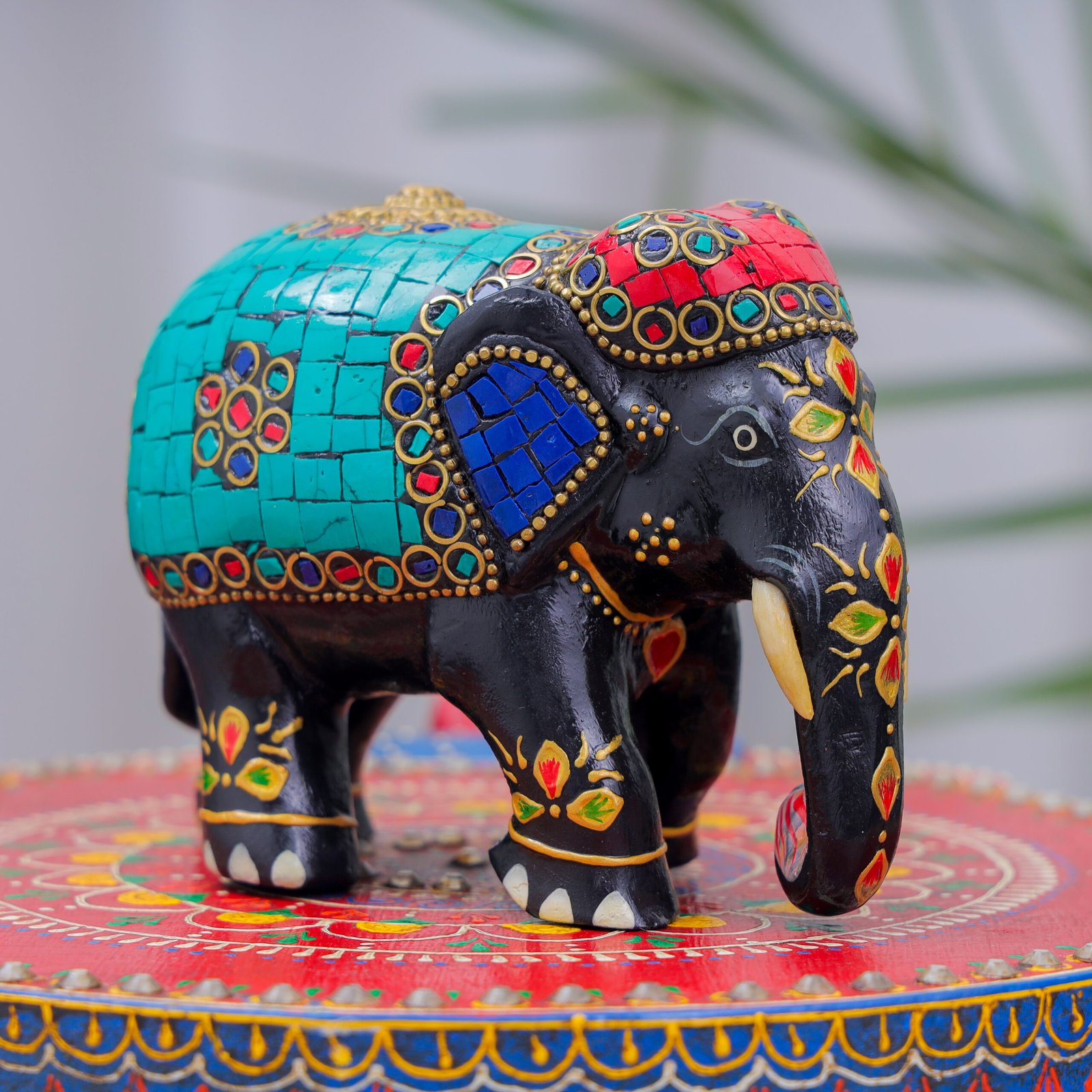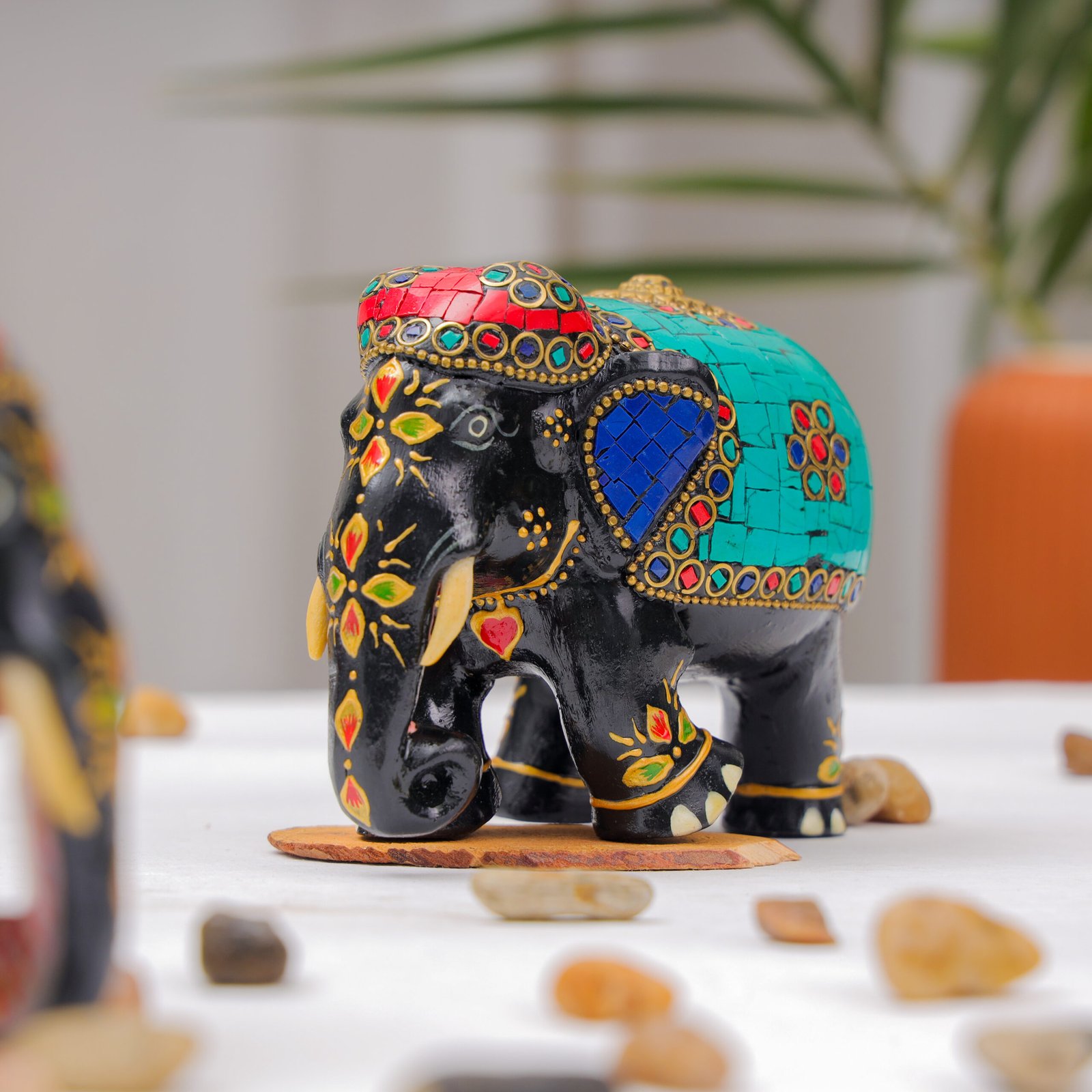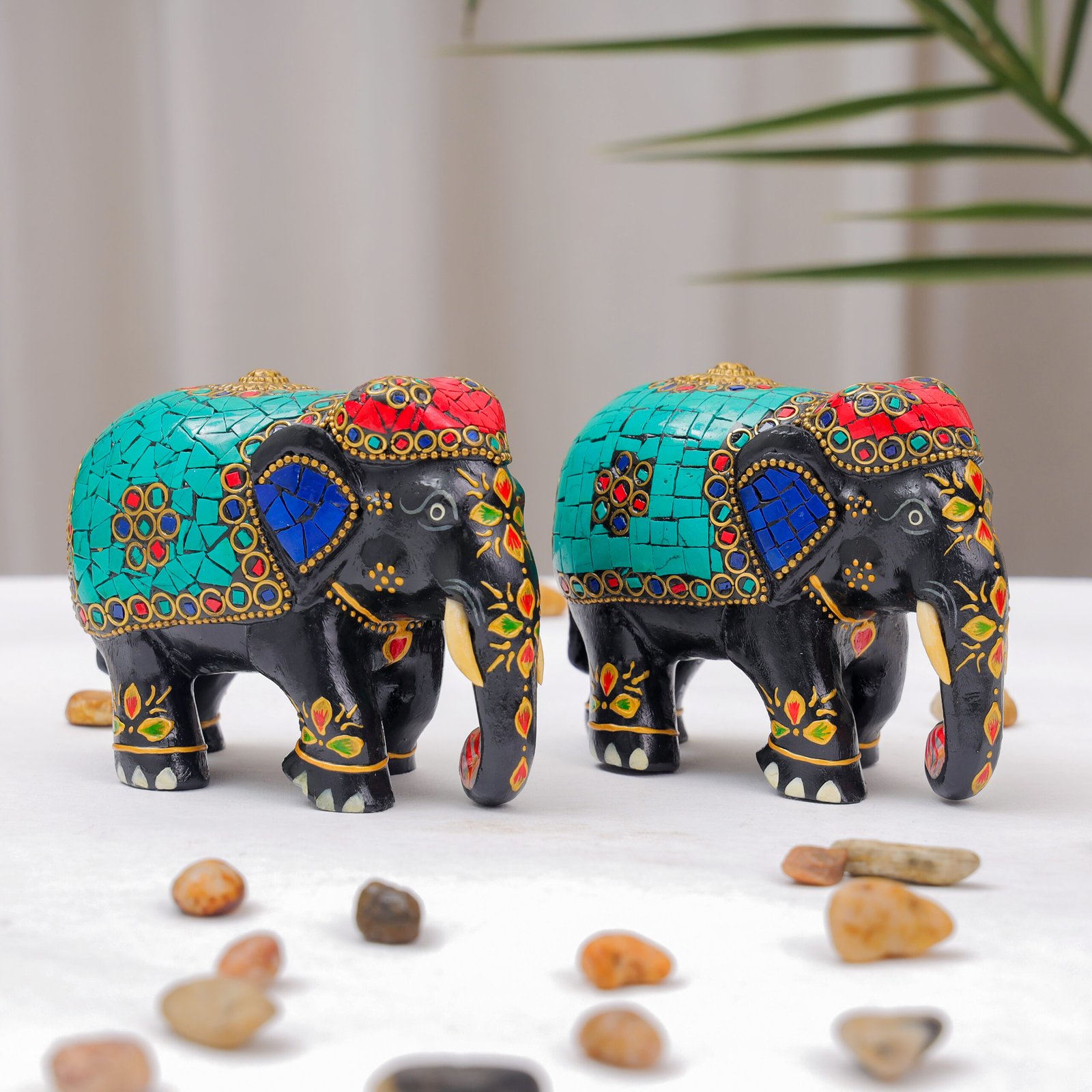 Add a regal touch to your décor with this exquisitely hand-painted wooden elephant pair, beautifully decorated with mirror and stone embellishments. Crafted by skilled artisans, these elephants reflect the vibrant essence of Rajasthani tradition and are a symbol of power, wisdom, and prosperity.
