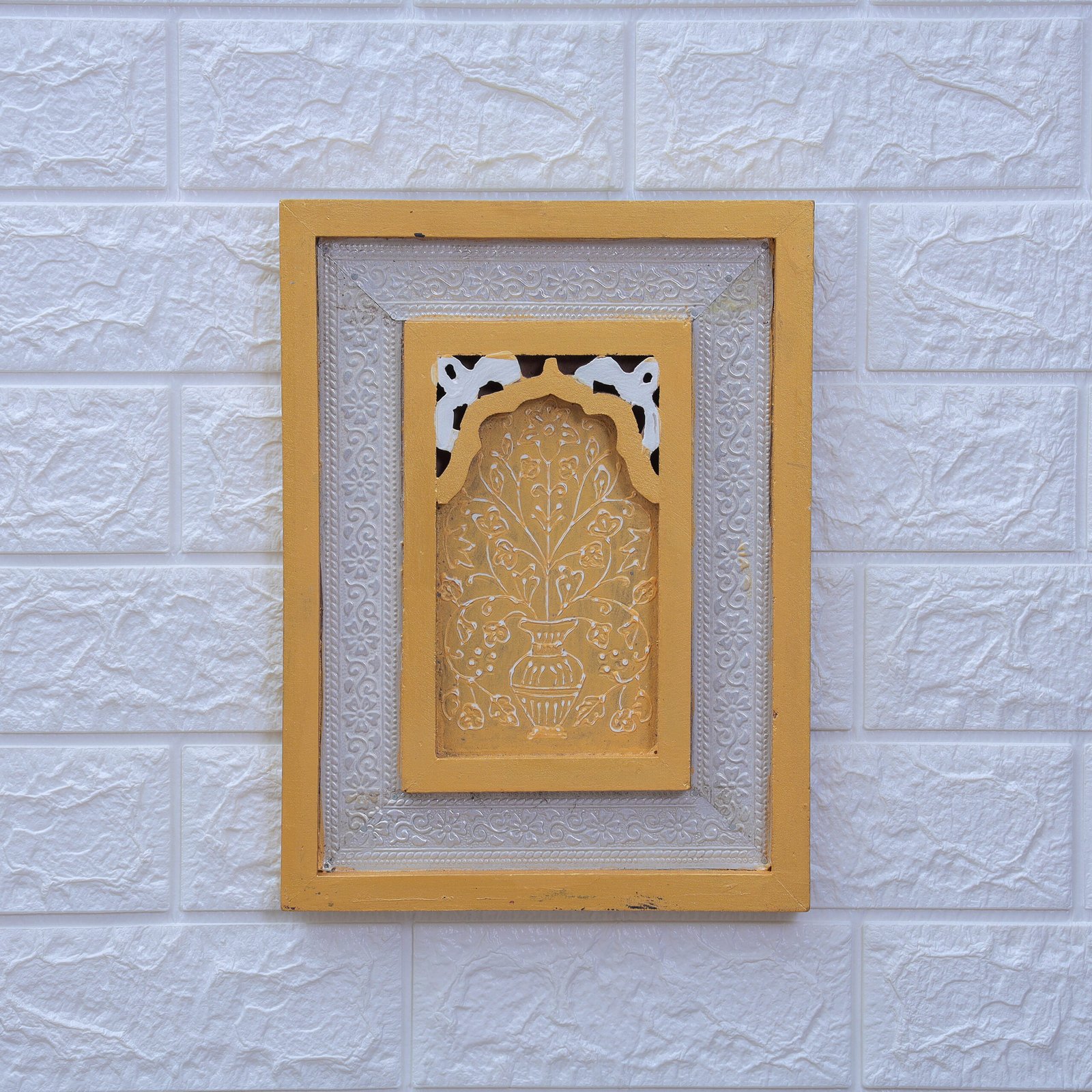 Add a touch of royal Rajasthani charm to your walls with this intricately crafted wooden wall frame featuring a classic Jharokha-style floral motif. Expertly handcrafted and hand-painted, this piece blends traditional Indian artistry with modern elegance.